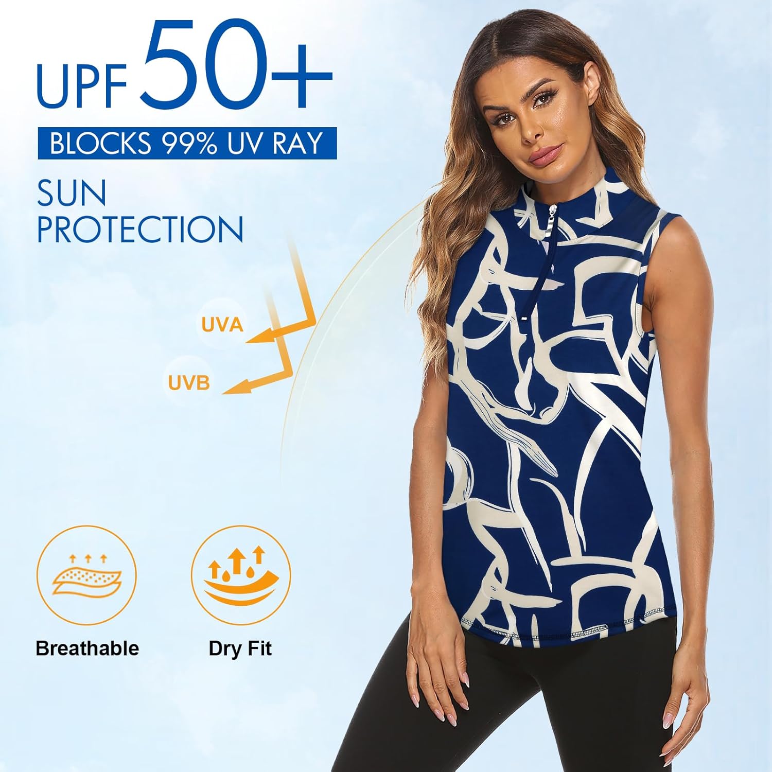 - Half Zipper Collar - Stand out from the crowd with our stand collar, sleeveless, v neck golf tank top. Half zip design allows for neck coverage, venting and easy on-off.
