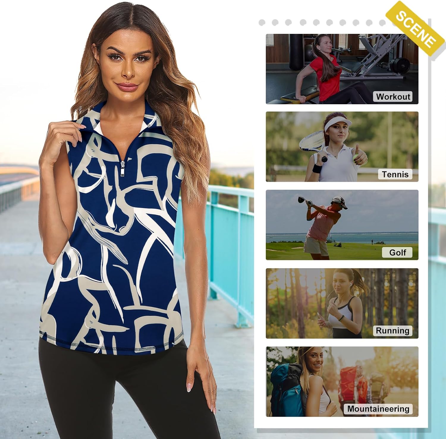 Koscacy Women's Sleeveless Golf Tennis Polo Shirts Zip Up Dry Fit Workout Tank Tops Athletic Shirt