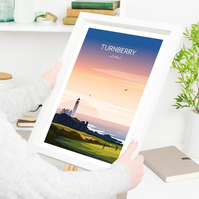 Nationcog Turnberry Golf Print - Ayrshire Scotland, Turnberry Golf Poster, Vintage Golf Travel Poster, Scotland Golf Course Art, Lighthouse Golf Print, Coastal Golf Wall Art (Unframed) (20x30)