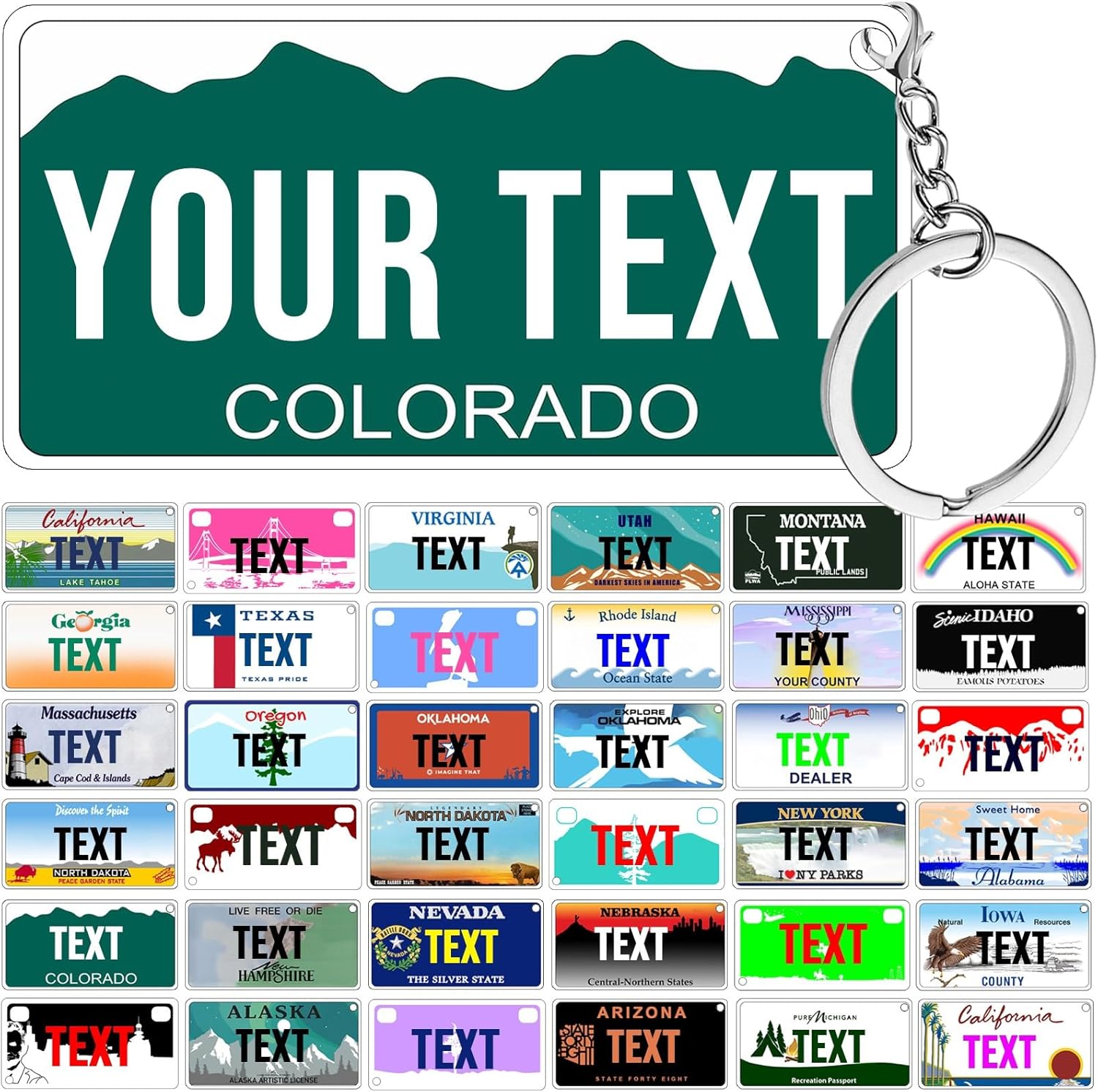 - MULTIPLE OPTIONS:License plate keychain has 50 states' styles, more than 100 designs,you can find the state’s styles you want.Customize a cute and fun state license plate keychain for yourself or your family,friends