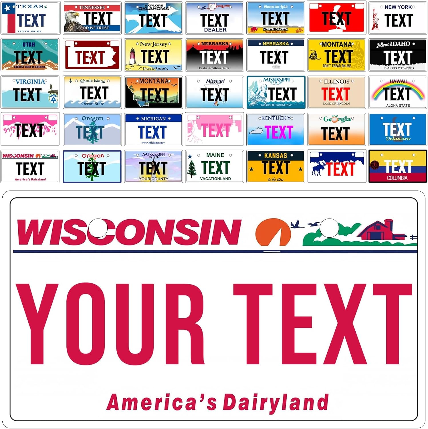 Custom State License Plates 50 States,Personalized Wisconsin Motorcycle License Plate - 3 Sizes - Customized Customizable State Car Tag Plate for Motorcycle,Golf Cart,7x4 Inch