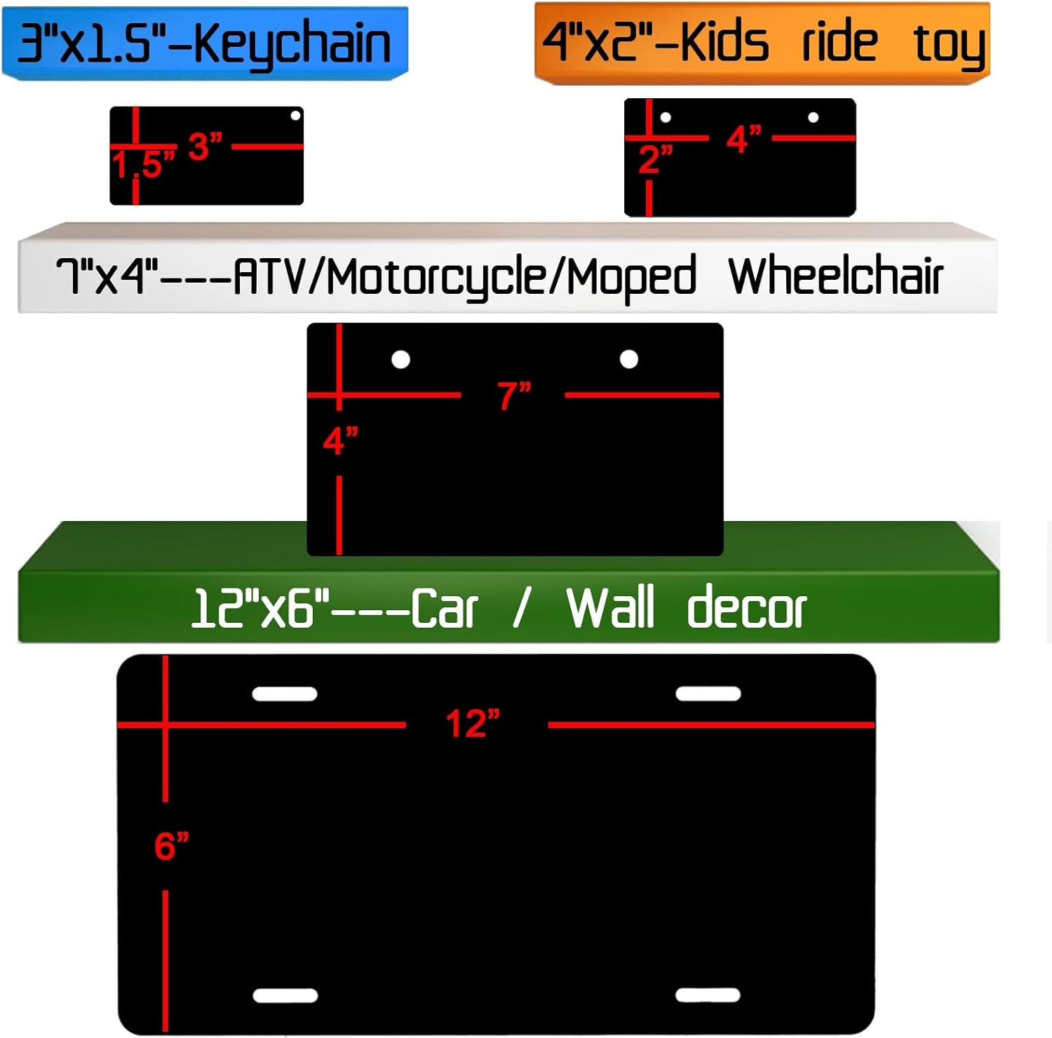 - 3 SIZES: Car license plate is available 3 sizes,2x4,4x7 and 6x12 inch.No drilling is required, easy mounting on any car,vehicle.(NOTE:Installation tool does not include)