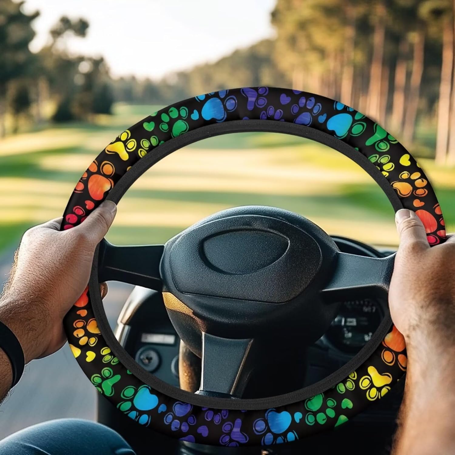 Neon Dog Paw Golf Cart Steering Wheel Cover 13-14 Inch Anti-Slip Golf Cart Steering Wheel Covers Stretchable Accessories for Club Car, Easy to Use and Clean