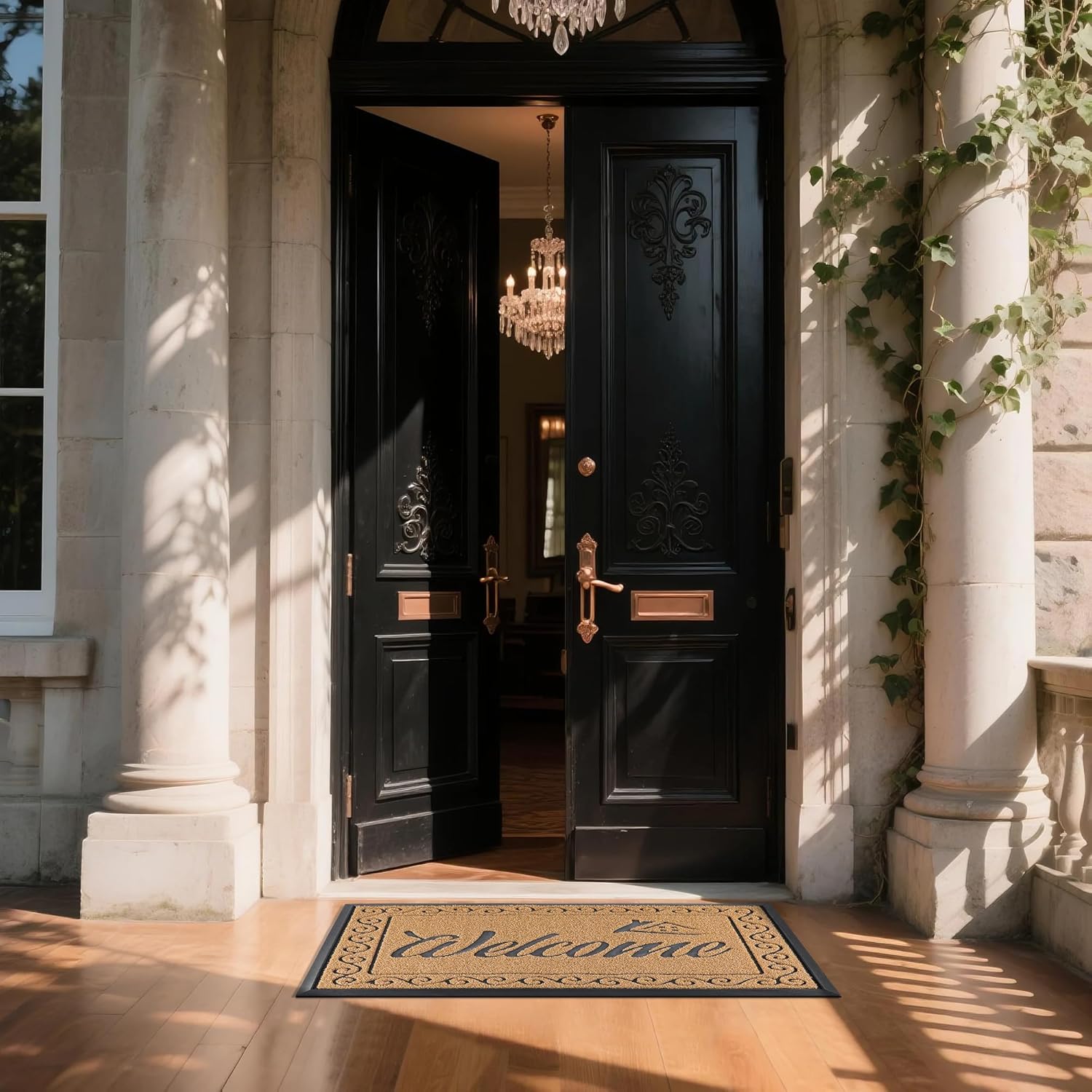 - 【Non-Slip Rubber Backing】: The back of the doormat is made of natural rubber, which has less odor, more tensile strength, and higher tear resistance, this heavy-duty doormat fits perfectly on the floor and helps to prevent slipping when entering and exiting, ensuring your family's safety