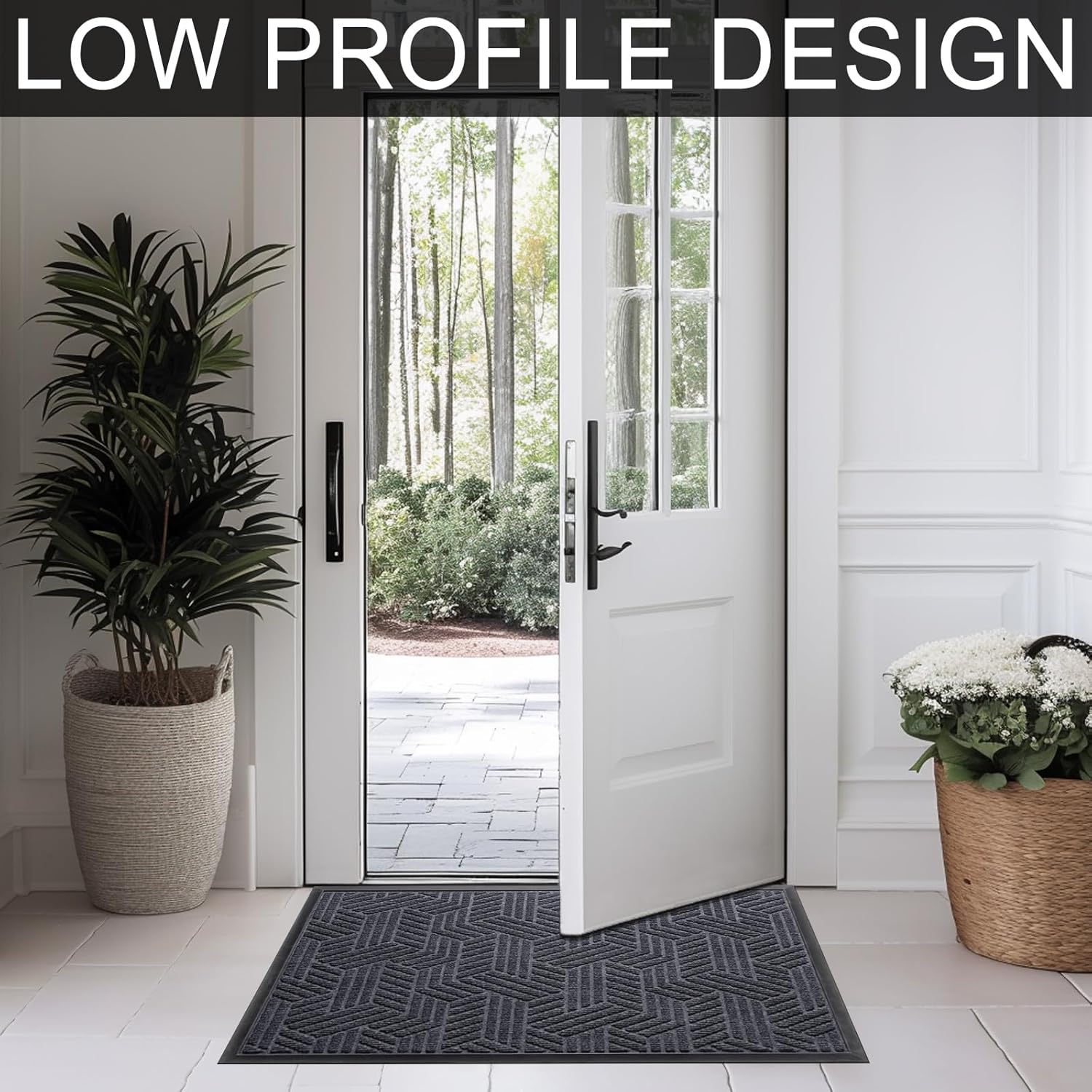 - Trap Dirt & Moisture: Designed with deep grooves, this mat effectively scrapes off mud, dust, and debris from shoes while absorbing moisture; the sturdy rubber border prevents water spillover, keeping your floor clean and dry, even in rain or snow