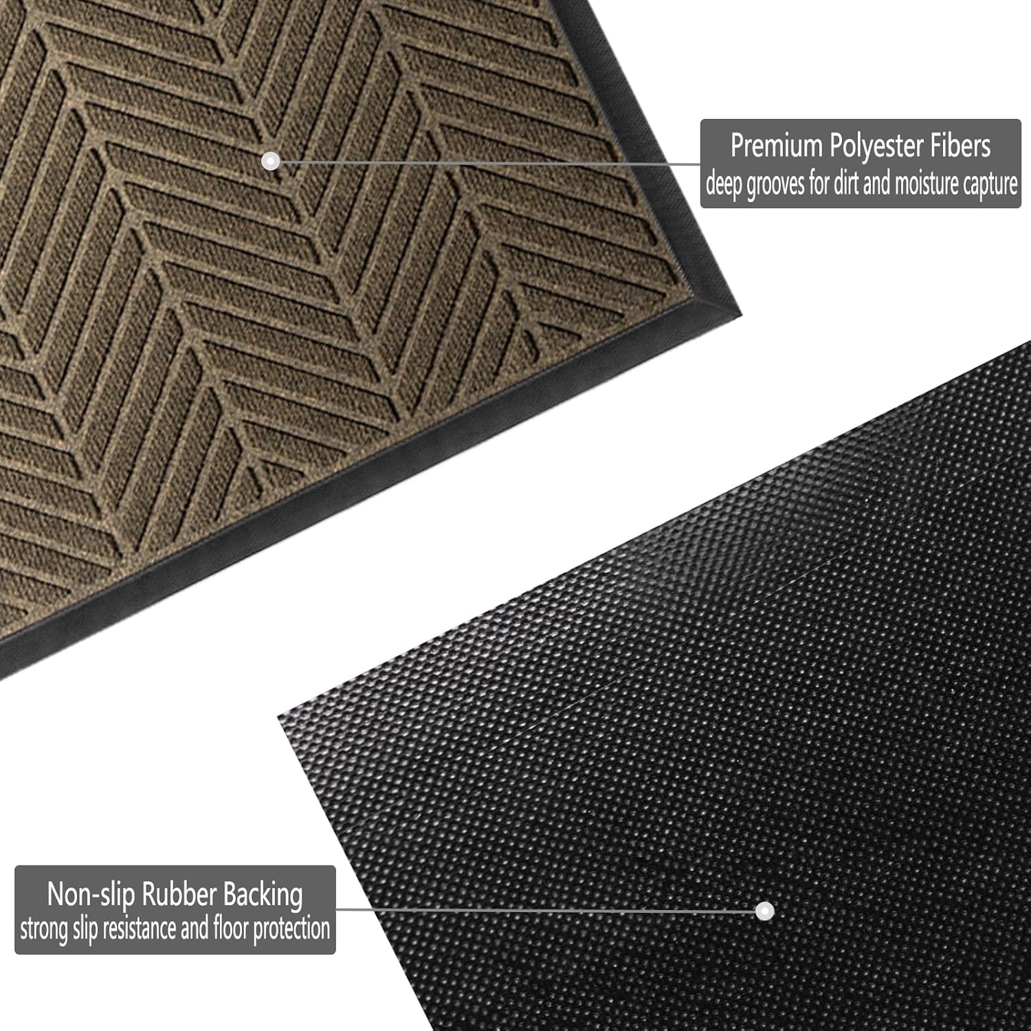 - Trap Dirt & Moisture: Designed with deep grooves, this mat effectively scrapes off mud, dust, and debris from shoes while absorbing moisture; the sturdy rubber border prevents water spillover, keeping your floor clean and dry, even in rain or snow