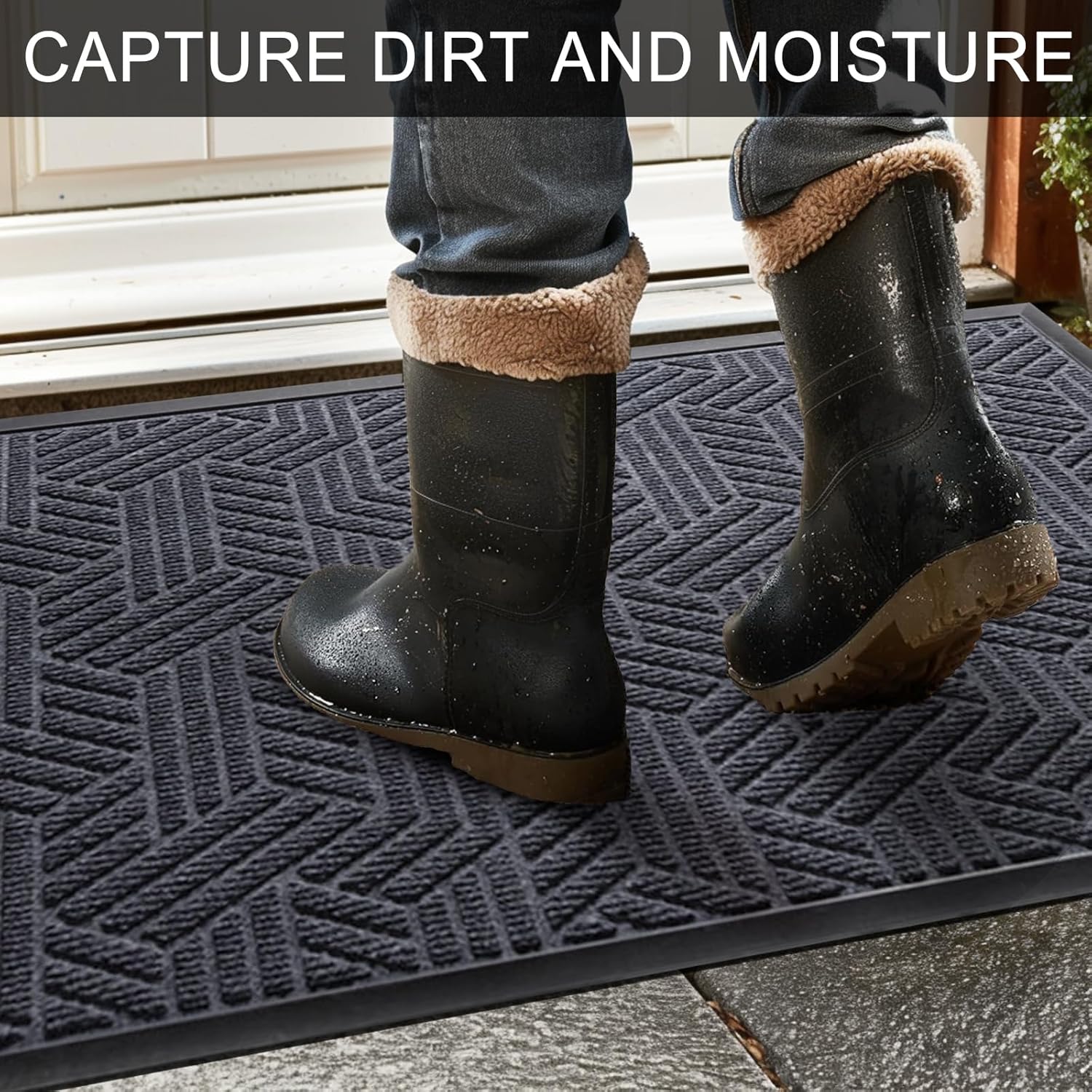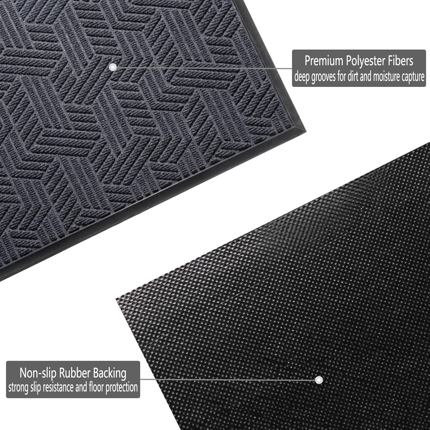 - Trap Dirt & Moisture: Designed with deep grooves, this mat effectively scrapes off mud, dust, and debris from shoes while absorbing moisture; the sturdy rubber border prevents water spillover, keeping your floor clean and dry, even in rain or snow