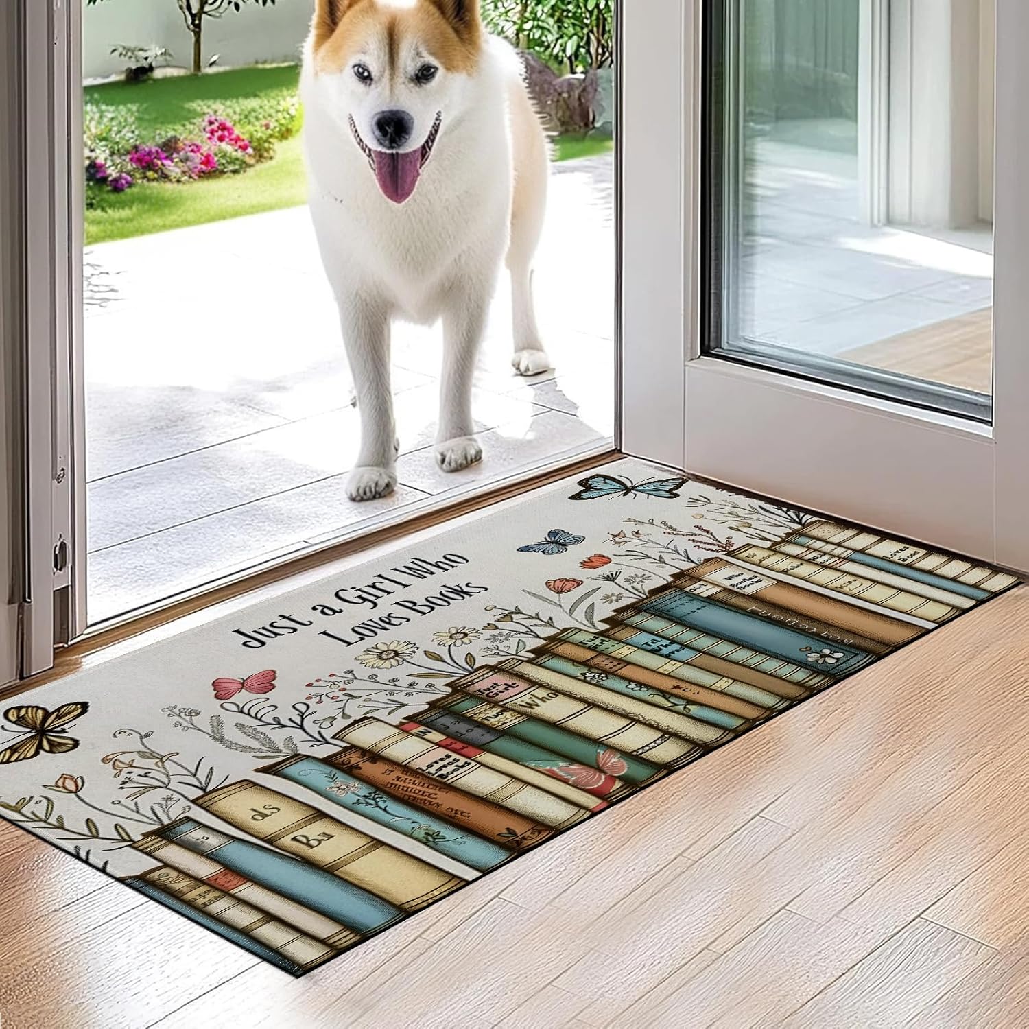 Just a Girl Who Loves Books Indoor Door Mat,Reader Floral and Butterfly Floor Doormat,17x29.5in,Non Woven Non Slip Rubber Backing Rug for Porch Insider,Kitchen,Doormats Gifts,Rv Camper Decor