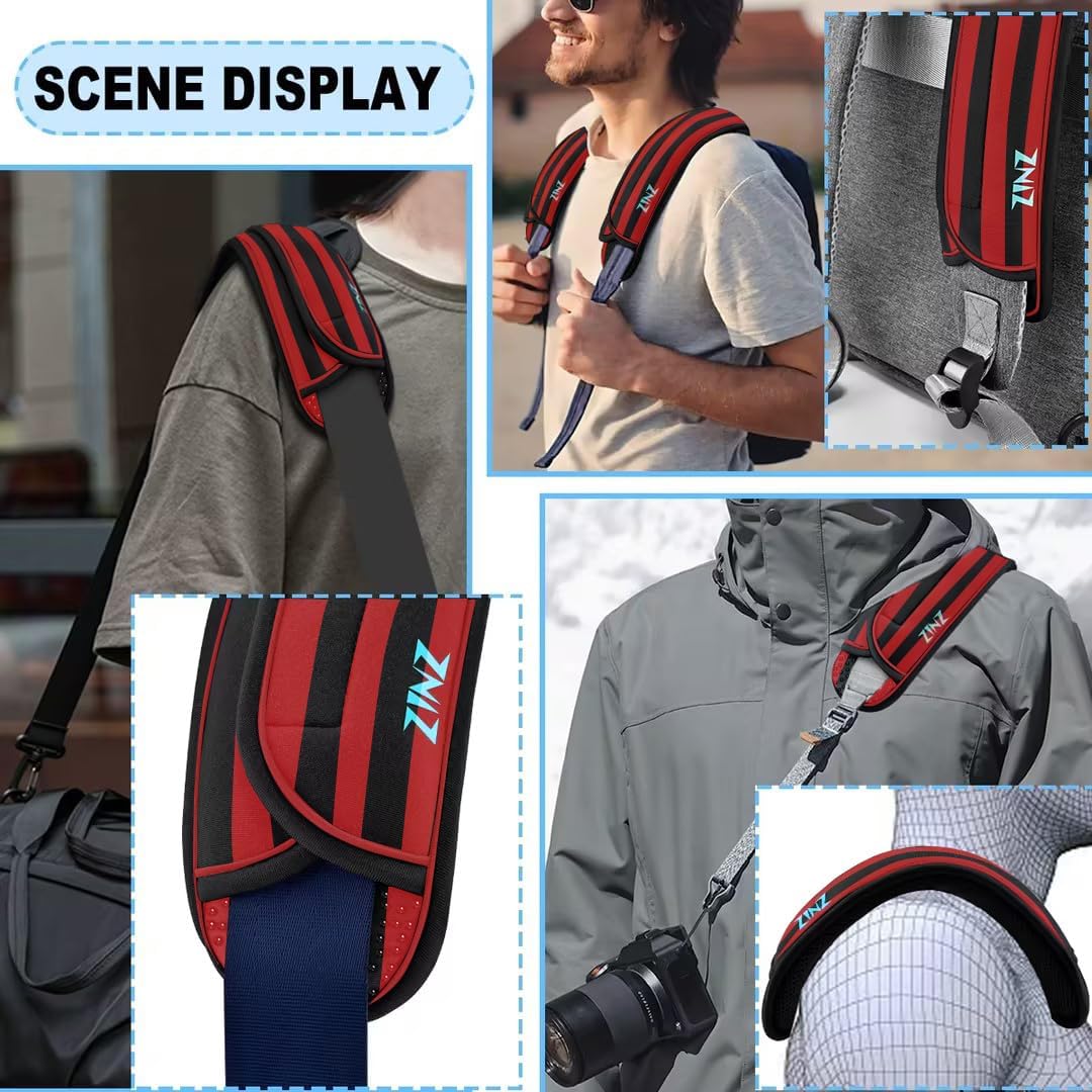 ZINZ 2-Pack Universal Shoulder Pad with Ultra Thick Cushion for Bag Luggage Bag Crossbody, Plus Long & Anti-Slip & Breathable,Black red Black