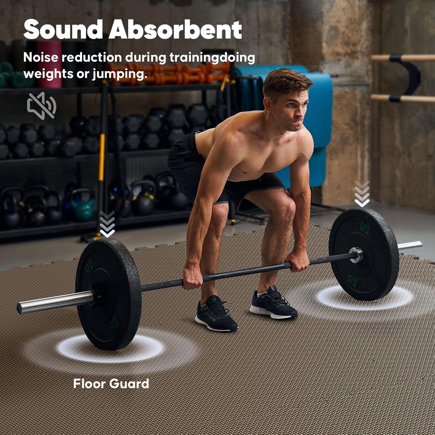 Home Gym Mat, Puzzle Exercise Mat, EVA Interlocking Foam Floor Tiles for Home Workout Equipment and Kids' Play Areas - Blue, 24 in x 24 in x ½ in - (Brown, 24 Pack(96 SQ FT))