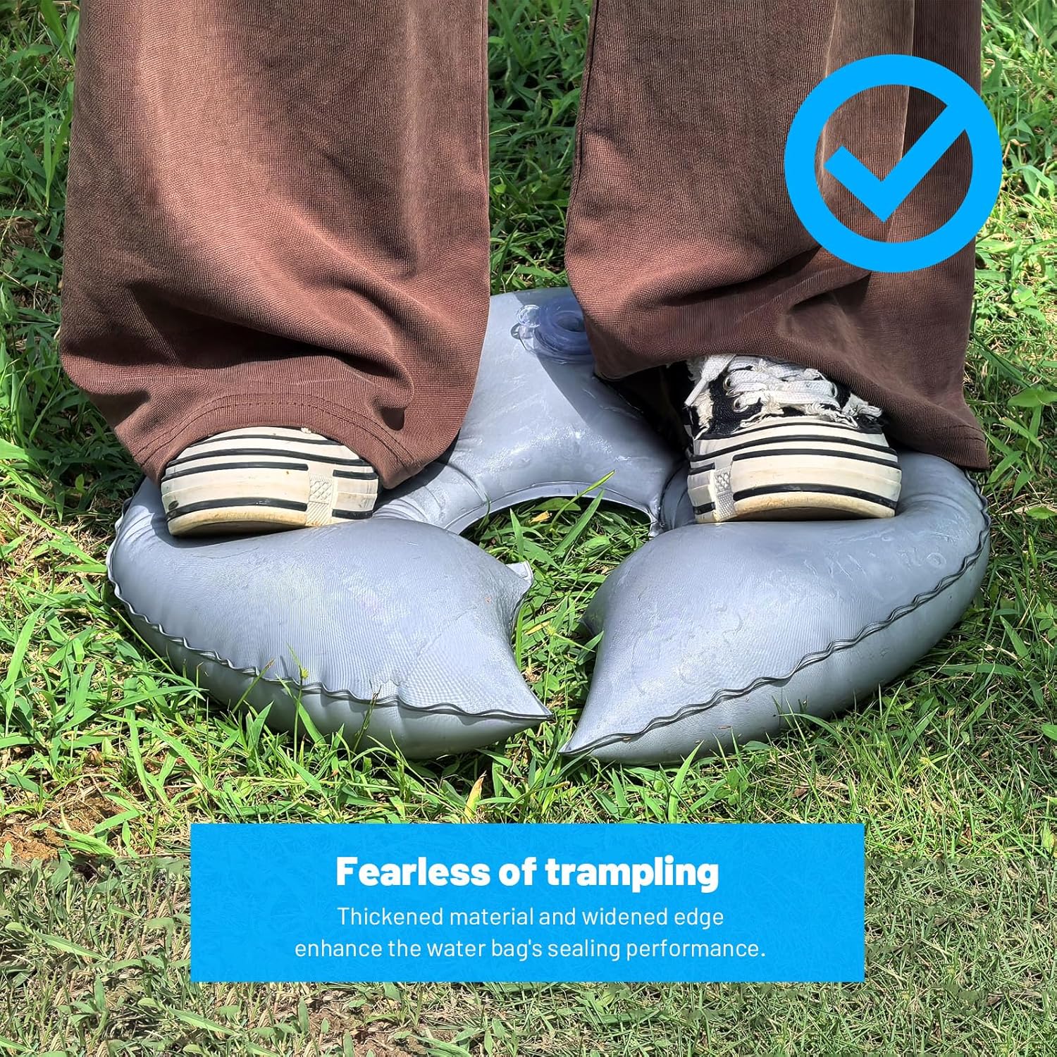 - Note: Do not throw water bags from heights.Instant impacton water generates strong explosive force, which mayrupture the bags,the water weight bag does not include the stand