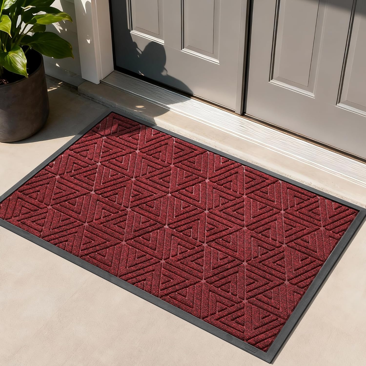 Yimobra Large Door Mat 47x32, All-Weather Waterproof Non-Slip Welcome Matt Outdoor, Heavy Duty Non Slip Doormat for Entryway for Patio and Garage Indoor, Easy Clean, Black Red