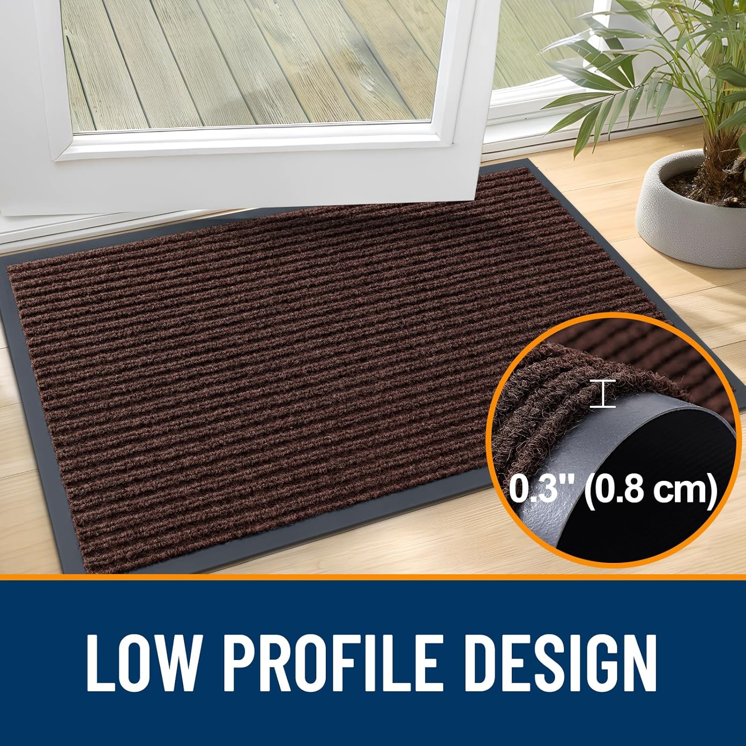 OLANLY Front Door Mat Indoor Outdoor Entrance, Waterproof Heavy Duty Doormat, Fade Resistant, Low Profile, Easy Clean Patio Porch Welcome Floor Mats for Entry, 33x21, Brown