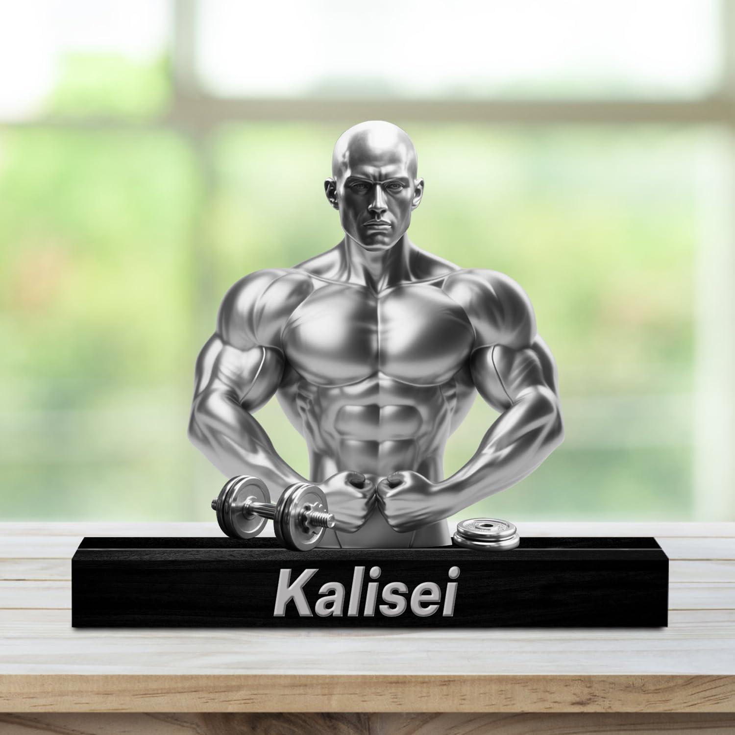 Personalized Fitness Muscle Man Ornaments for Bedroom Office Sport Room Custom Name Figurine Sign Plaque Fitness Dumbbells Athlete Acrylic Plaque Home Decor Gift for Men Women Sport Lover