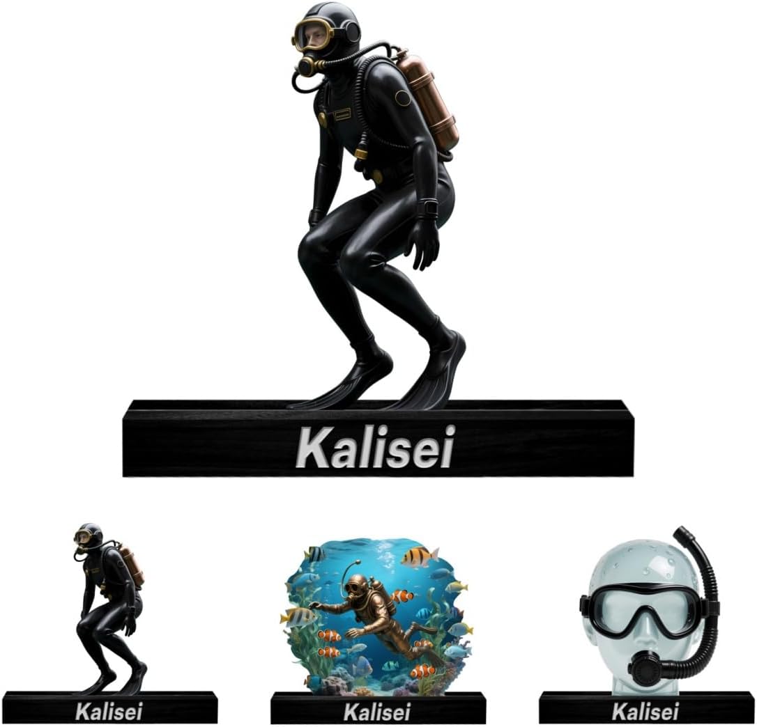 Personalized Diver Desktop Ornament Sign Custom Name Desk Sign Art Diving Lovers Flat Plaque with Wooden Base for Home Men Cave Desk Decoration Plaque Gifts for Diver Christmas Xmas Birthday