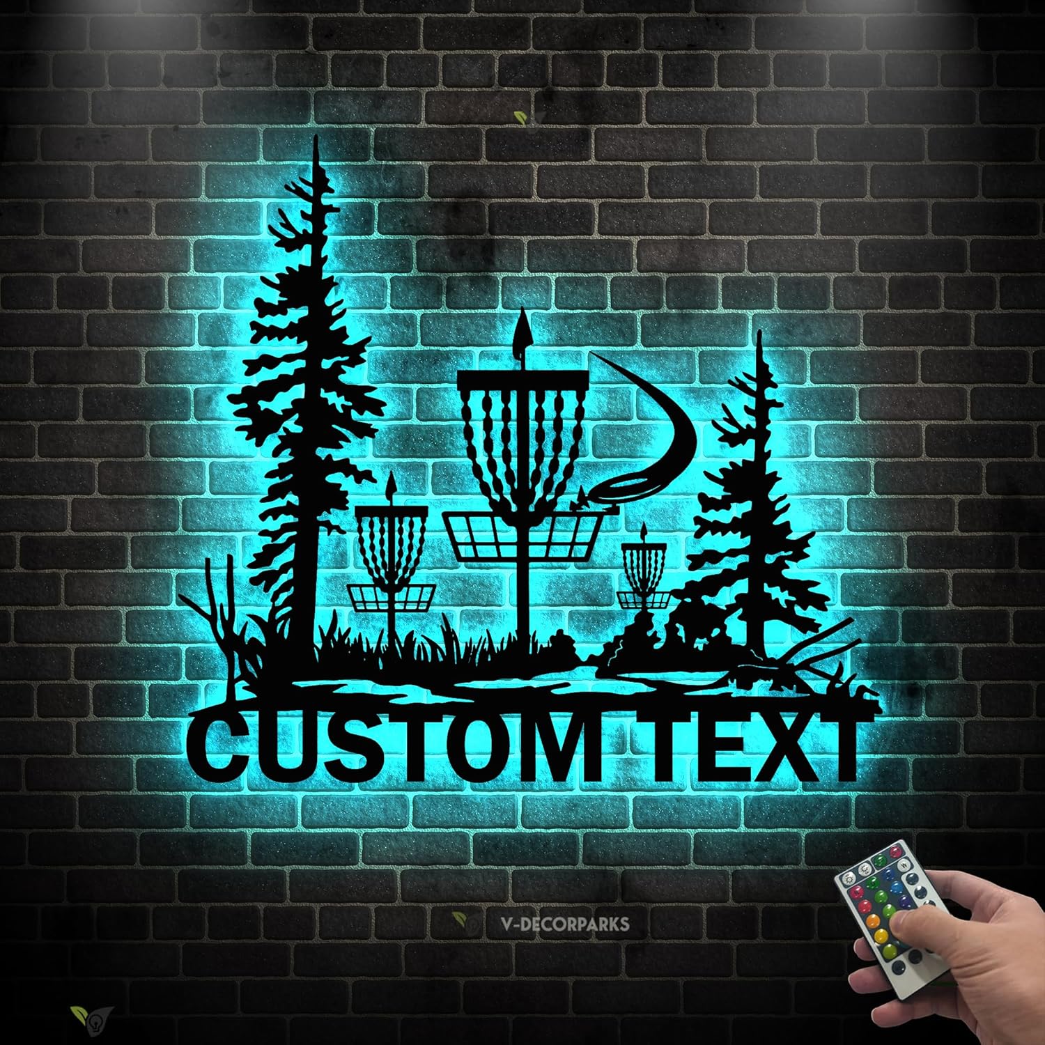Custom Disc Golf Wall Art with LED Light, Personalized Name Lighted Metal Sign for Golf Lovers, Man Cave, Game Room, Sports Decor, Sports Wall Lights, Father's Day Gift Model-Disc01