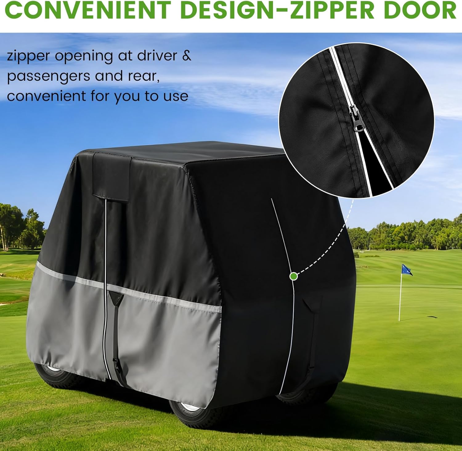 Waterproof Golf Cart Cover - Heavy Duty 420D Oxford Fabric, Universal Fit for 4+2 Passenger Yamaha/Club Car/EZGO, All-Weather Protection