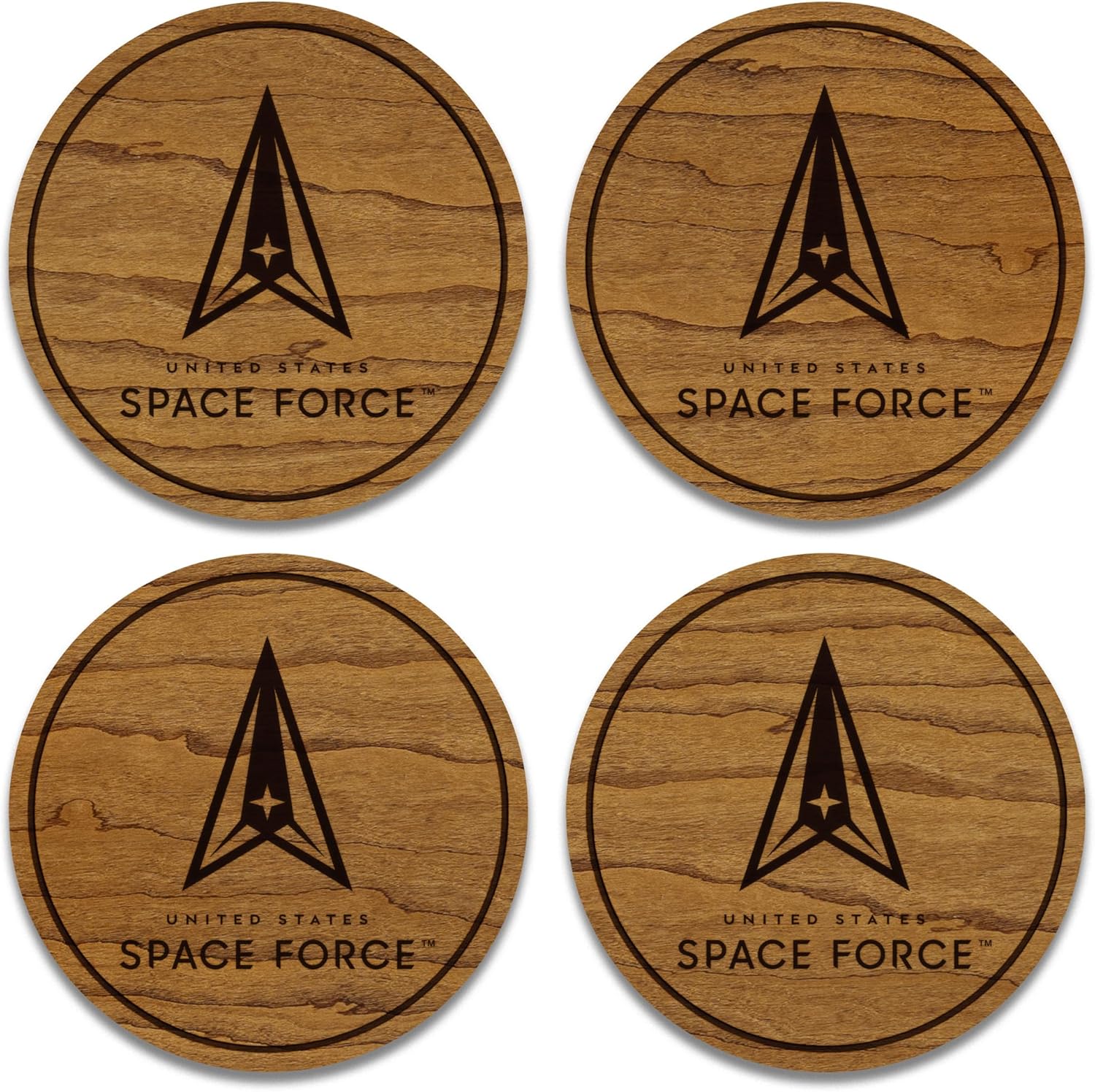 LazerEdge U.S. Space Force Wooden Coaster Set β Cherry Wood β Handcrafted Collectible 4-Pack | Made in USA | Officially Licensed Product (Space Force)