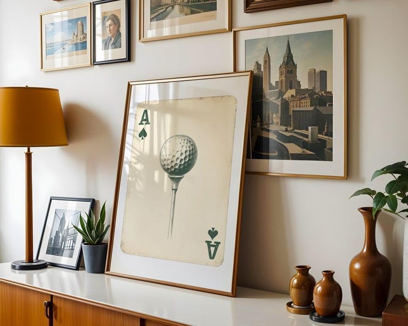 Nationcog Vintage Golf Playing Card Wall Art, Retro Ace of Spades Sports Print for Bar, Office or Game Room Decor, Classic Golfer Poster with Tee Time Theme (Unframed) (11x14)