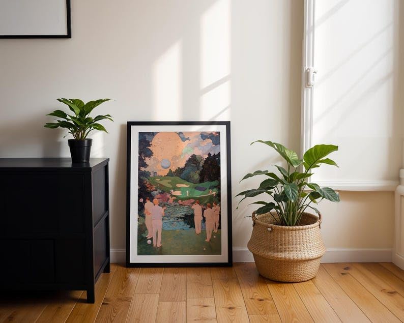 Nationcog Retro Golf Oil Painting Wall Art, Vintage Abstract Sports Print for Bar, Office or Game Room Decor, Masters Course Golfer Artwork with Tee Time Theme (Unframed) (11x14)