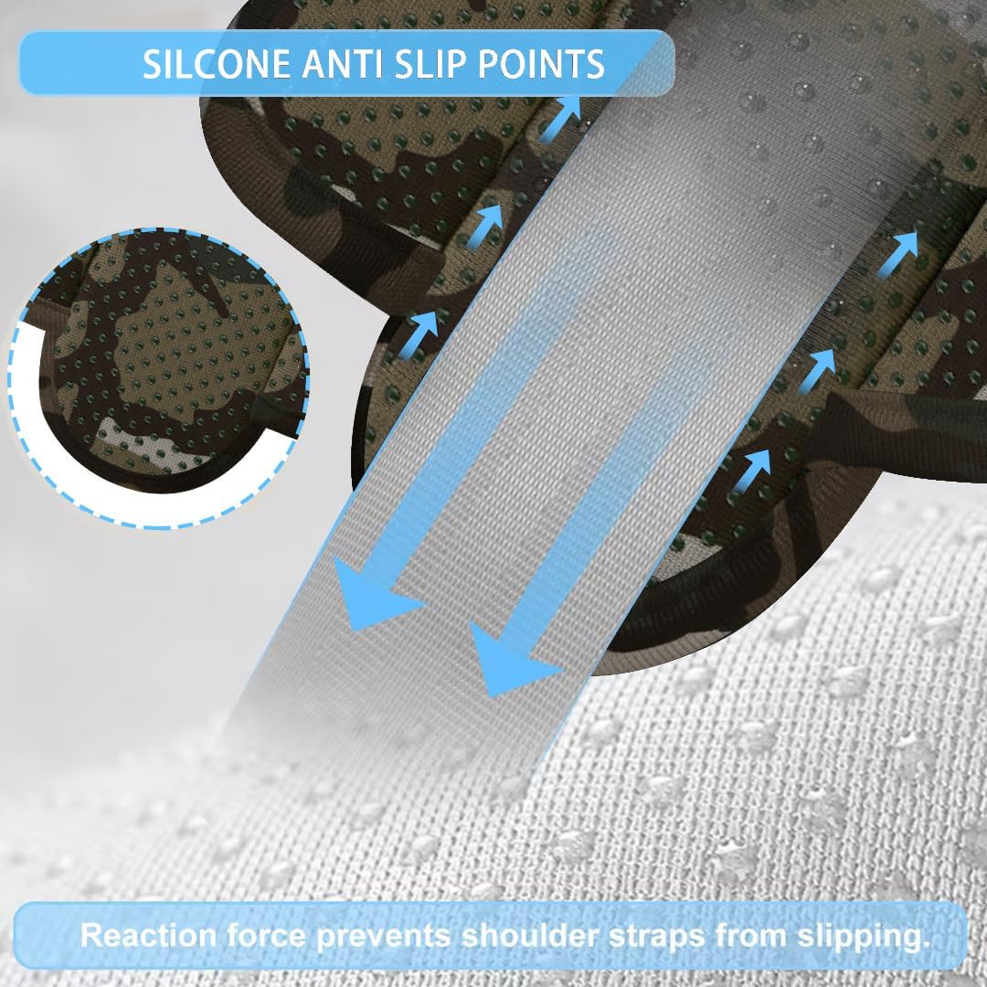 - The adjustable velcro feature allows for a customized fit, covering the entire shoulder for optimal protection. When carrying a heavy backpack, this shoulder pad cushions the pressure, enhancing comfort.