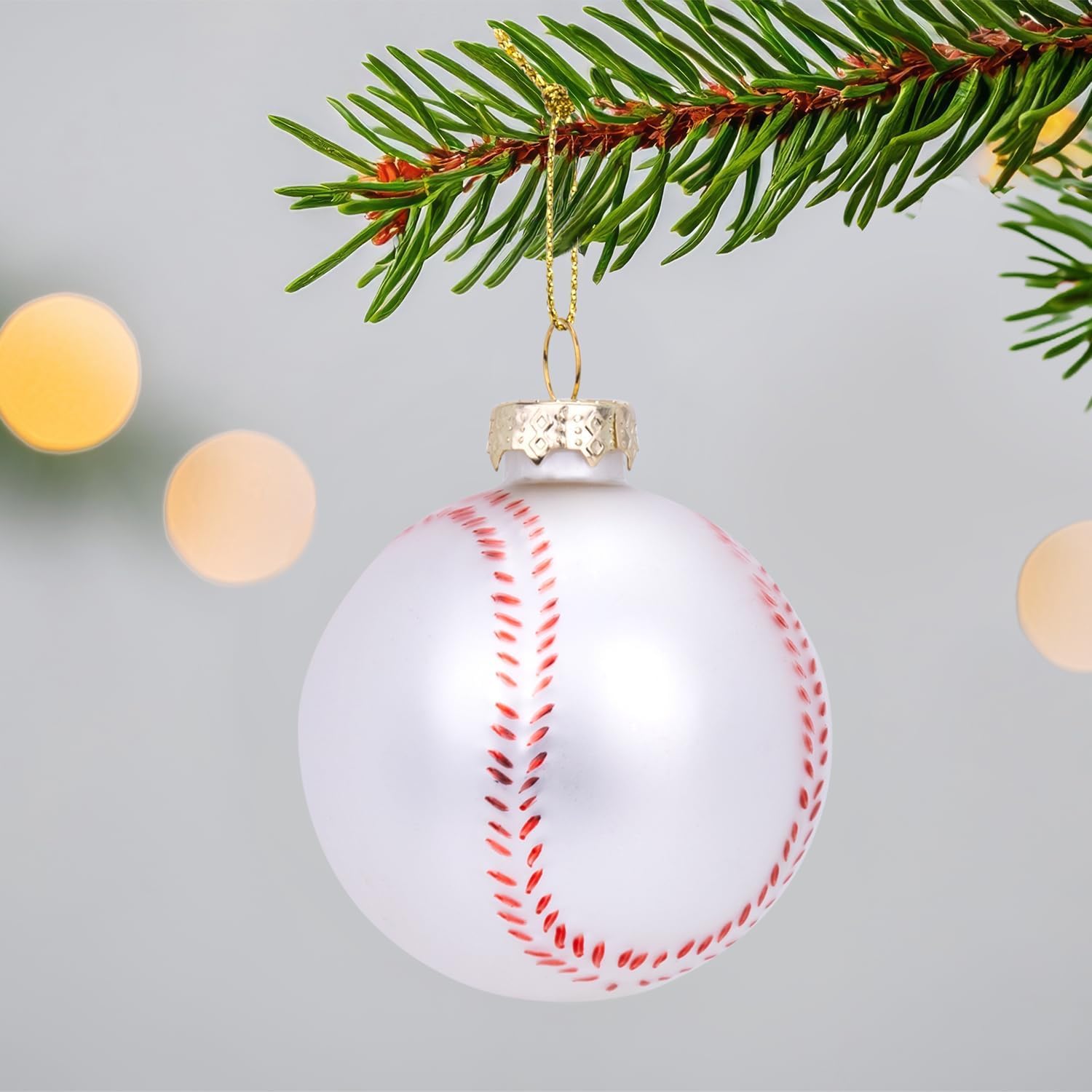 - Realistic Baseball Design with Holiday Sparkle: Measuring 2.36'', this glass ornament is hand-painted in glossy white lacquer with red-stitched detailing and glittered seams. It faithfully replicates the look of a real baseball while catching and reflecting lights, making it a standout piece on any tree or display.